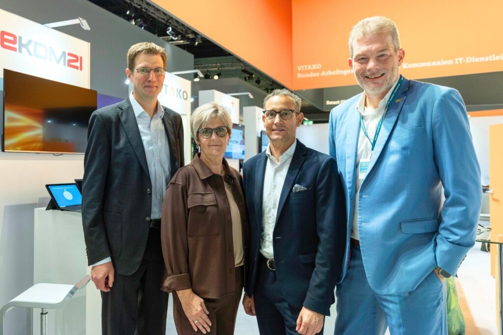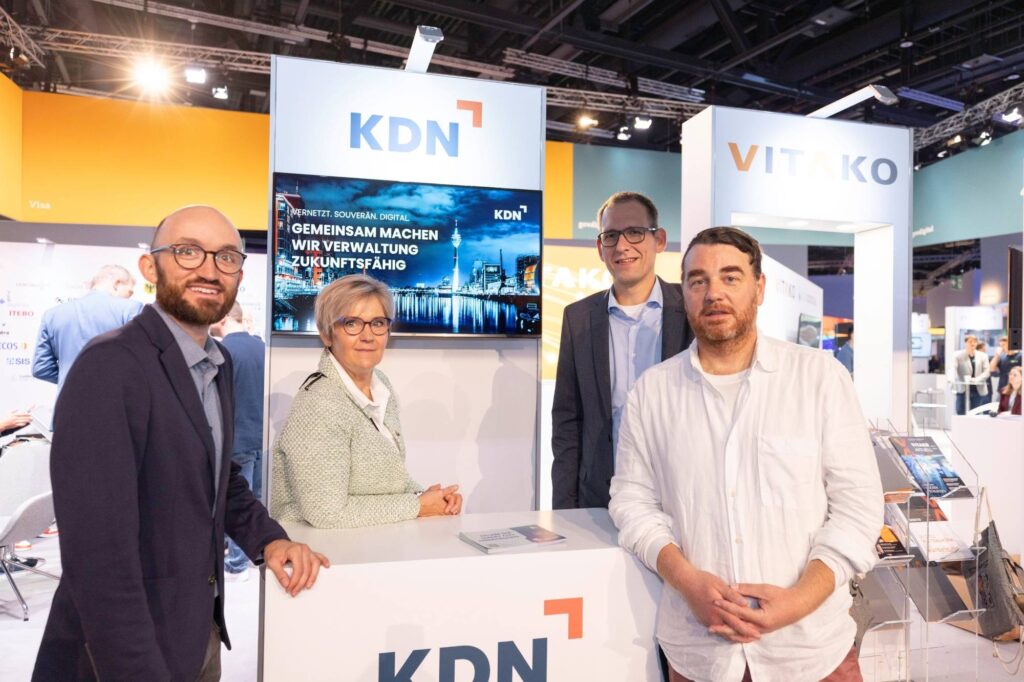 Kaum gab die Messe Berlin den Startschuss für die diesjährige Smart Country Convention (SCCON), füllte sich der hub27 am frühen Morgen des 30. Septembers. Inmitten der Halle befand sich der Kooperationsstand von VITAKO und govdigital. Der KDN-Dachverband hat sich bereits das zweite Jahr in Folge am VITAKO-Gemeinschaftsstand als Aussteller beteiligt. Am KDN-Stand wurde sehr schnell deutlich: der Bedarf am persönlichen Austausch ist groß. Gemeinsam mit Mitgliedern sowie Expert*innen aus Verwaltung, Politik und Wissenschaft sprach das KDN-Team über aktuelle Digitalisierungsvorhaben und mögliche Schnittstellen für gemeinsame Projekte. Zudem waren die KDN-Mitglieder Gelsenkirchen und Oberhausen zu Gast am Stand und präsentierten innovative Digitalisierungsprojekte direkt aus den Kommunen.